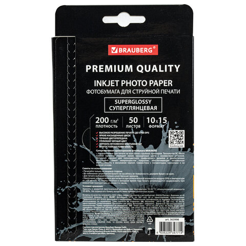 Суперлянцевая односторонняя фотобумага премиум качества BRAUBERG обеспечивает студийное качество фотографий.