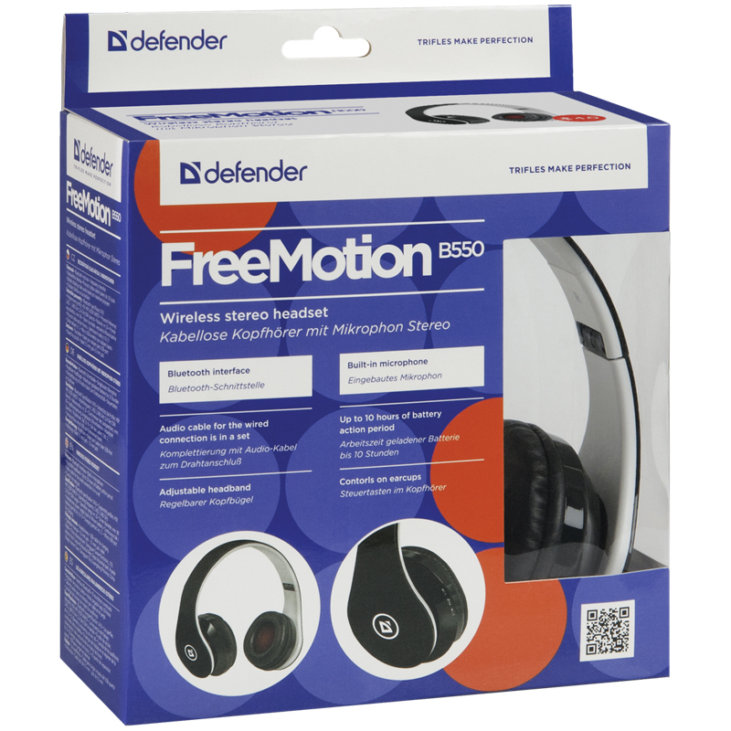 Наушники с микрофоном беспроводные Defender FreeMotion B571, Bluetooth, складные, MicroSD, разъем Type-C, черный