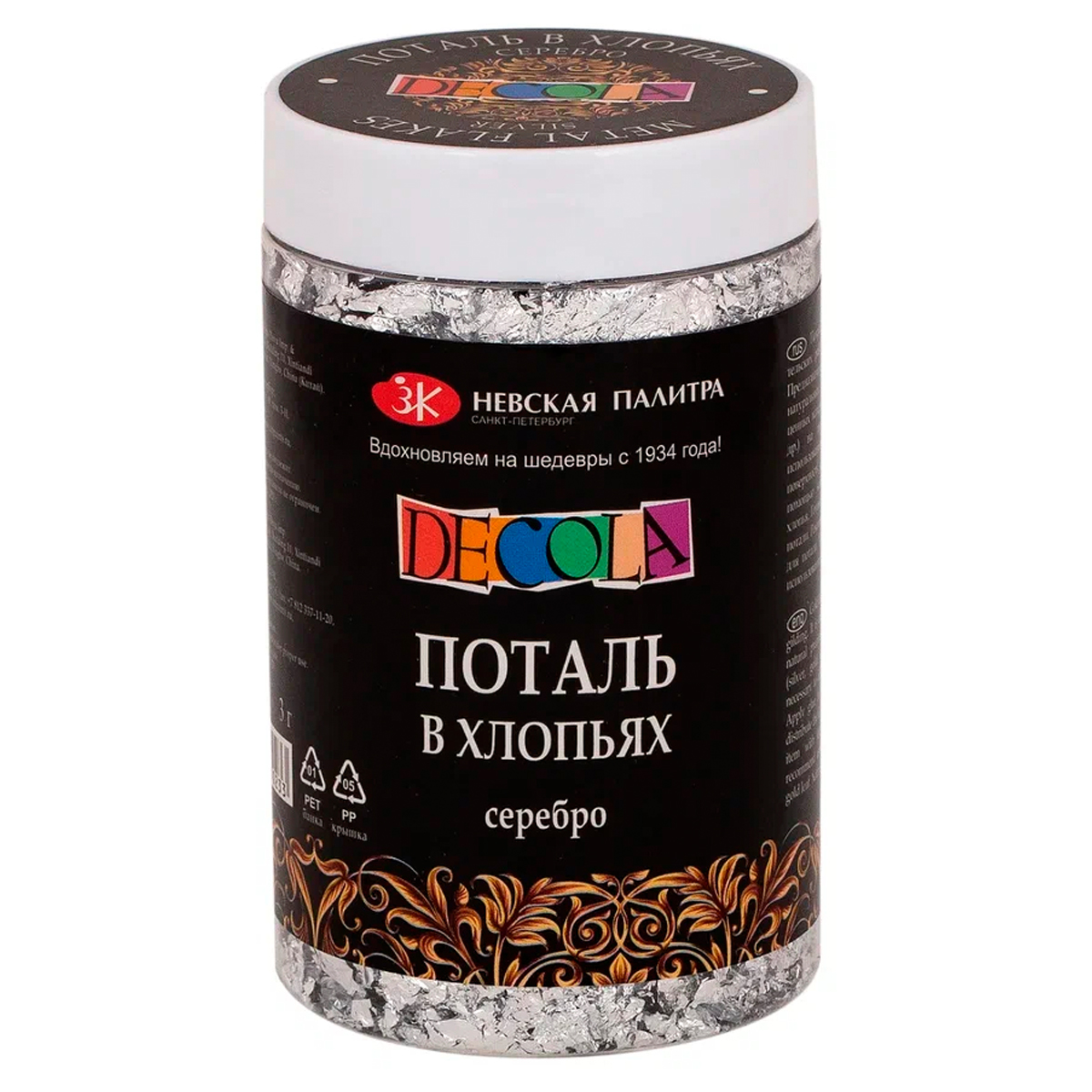 Поталь в хлопьях Decola, 3 г, серебро