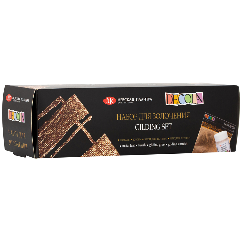 Набор для золочения №2 Decola: поталь золото 25 листов, лак и клей для потали по 50мл., кисть синтетика