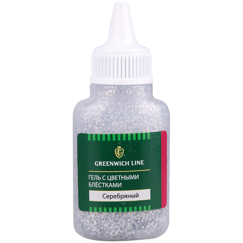Гель с цветными блестками Greenwich Line, 40мл, серебро