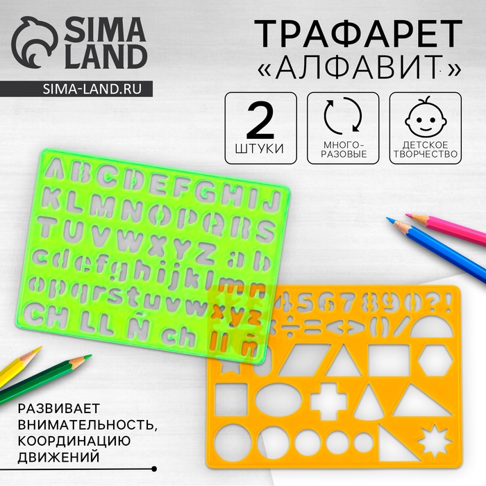 Набор трафаретов «Английский алфавит, цифры, фигуры», 2 шт.
