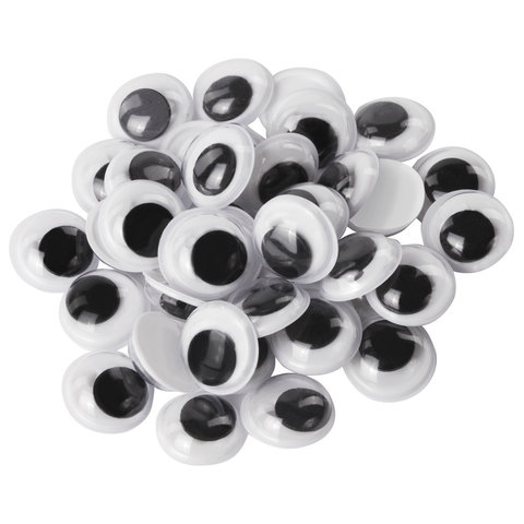Имеют круглую белую форму с черными зрачками. Изготовлены из высококачественного пластика. Вращающиеся глазки позволяют придать игрушке или поделке оригинальность. Предназначены для детей от 3 лет. Размер - 12 мм. Поставляются в пакете с европодвесом в количестве 30 штук.