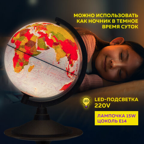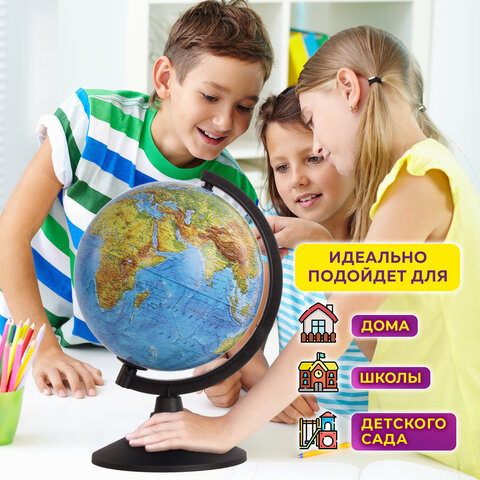 Глобус позволит ознакомиться с физической и политической картой мира. Подходит для использования в детских садах и школах. Поможет узнать об организационно-правовом (политическом) укладе территорий и рельефе земной поверхности.