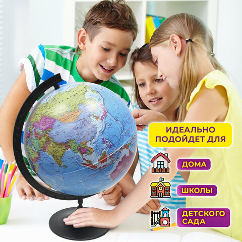 Глобус позволит ознакомиться с политической картой мира. Подходит для использования в детских садах и школах. Поможет узнать об организационно-правовом (политическом) укладе территорий, показывает сухопутные и морские границы государств и их столицы.