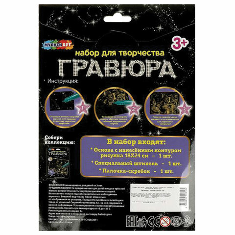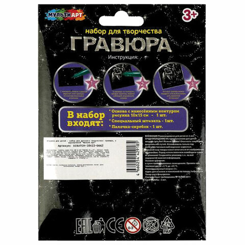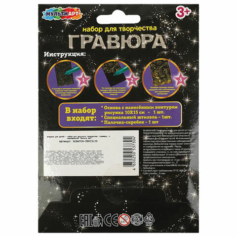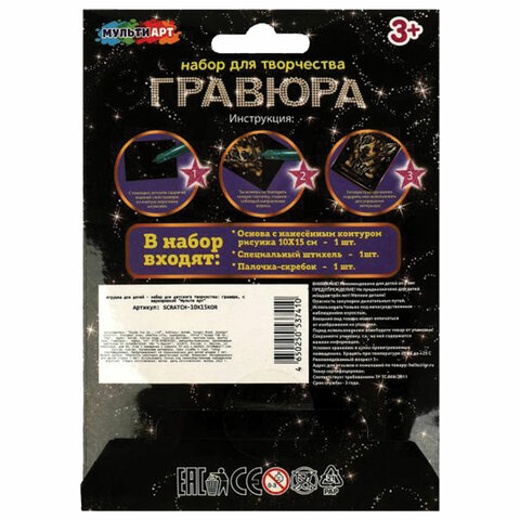 Гравюра в технике скретчинг, АССОРТИ 15 видов, 18х24 см, цветная основа, МУЛЬТИ АРТ, 5957