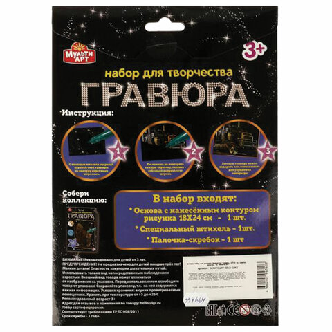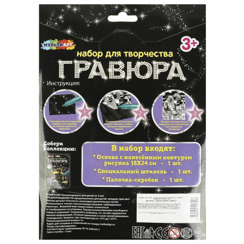 Гравюра в технике скретчинг, АССОРТИ 15 видов, 18х24 см, цветная основа, МУЛЬТИ АРТ, 5957