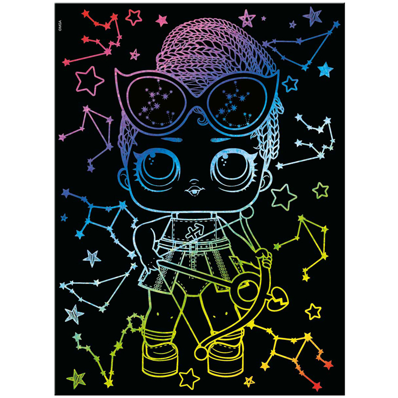 Гравюра - удивительный вид творчества, а с популярными героинями ЛОЛ становится интересным. Собери всю коллекцию ярких изображений, сделанных своими руками у себя дома! Набор для творчества включает в себя: Многослойная основа - металлизированное покрытие с черным грунтом и контурным рисунком для процарапывания сверху. Состав: