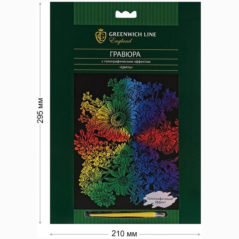 Гравюра предназначена как для взрослых, так и для детей старше восьми лет. <br/>В набор входят: <br/>1. Картонная основа размером 29,5*21см с металлическим эффектом и нанесенным контуром;<br/>2. Специальный штихель. <br/>Комплект упакован в картонный конверт с европодвесом.<br/>Картины по номерам – это доступное занятие для всех, в особенности для тех, кто не умеет рисовать, но хочет прикоснуться немного к творчеству. В комплекте предусмотрено всё необходимое, что поможет создать собственное удивительное произведение и почувствовать себя художником. Процесс имеет развивающий и успокаивающий эффекты. А столь интересное занятие для детей способствует проработке моторики. Готовая поделка может стать отличным элементом домашнего декора. <br/>• Основа: картон;<br/>• Вид товара: гравюра;<br/>• Тематика: цветы;<br/>• Размер: 29,5*21см;<br/>• Возраст: от 8 лет;<br/>• Пол: универсальный.