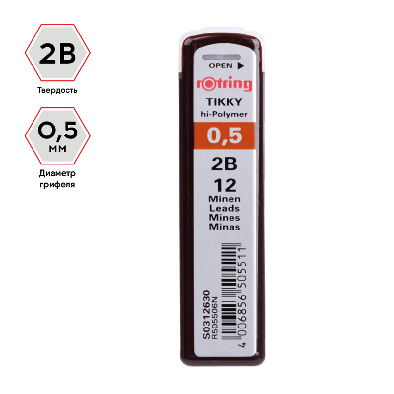 Полимерные стержни для механических карандашей Rotring "Tikky". Их высокопрочная формула превращает механические карандаши в нечто большее, чем просто карандаш со сменными стержнями. Диаметр грифеля 0,5мм. Твердость грифеля: 2B.
