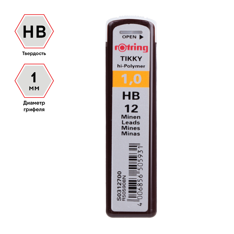 Полимерные стержни для механических карандашей Rotring "Tikky". Их высокопрочная формула превращает механические карандаши в нечто большее, чем просто карандаш со сменными стержнями. Диаметр грифеля 1,0мм. Твердость грифеля: HB.