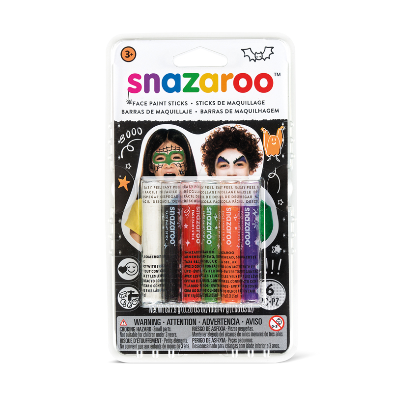 Набор красок-карандашей для детского грима лица «Хэллоуин», 6 цветов<br/>В набор входят: оранжевый, белый, красный, зелёный, фиолетовый, чёрный.<br/>Состав: см. на упаковке. Для наружного применения. Для детей старше 3 лет. Краски на водной основе, в карандашах, легко наносятся на тело, легко смываются водой с мылом. Достаточно нанесения одного слоя грима для получения стойкого цвета. Рекомендуется предварительно нанести базовый краску-грим арт. 1198200. Новая форма позволяет прорисовывать линии и закрашивать большие области для создания множества различных рисунков. Краски безопасны и нетоксичны. МЕРЫ ПРЕДОСТОРОЖНОСТИ: не наносите краску на участки кожи вокруг глаз, на потрескавшуюся или воспаленную кожу. Любая косметика в редких случаях может вызывать аллергическую реакцию. Если вы знаете о чувствительности Вашей кожи, необходимо протестировать краску на небольшом участке кожи (например, внутренней стороне локтя). Если в течение 1 ч появилась аллергическая реакция, не используйте данную краску. Избегать воздействия прямых солнечных лучей. Хранить в оригинальной упаковке, в чистом и сухом виде, с закрытой крышкой при температуре от +5 до +30 °С. <br/>Срок годности 18 месяцев после вскрытия упаковки. Товар сертифицирован.<br/>Производитель: Snazaroo Holdings Ltd, Майнхеад, Сомерсет TA24 5БДжи, Соединенное Королевство Великобритании и Северной Ирландии.<br/>Импортёр: ООО «ТД ПАС», Россия, 197342, г. Санкт-Петербург, ул. Сердобольская, д. 68, лит. Ф, пом. 3-Н