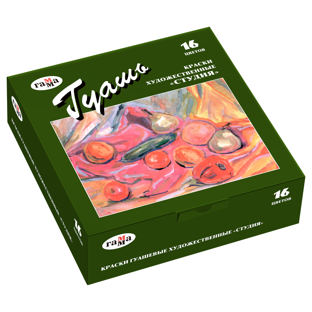 Гуашь художественная Гамма "Студия", 16 цветов, 40мл, картон. упаковка