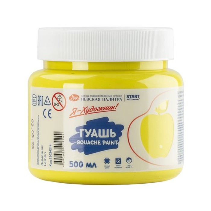Гуашь в банке 500 мл, ЗХК "Я - Художник!", Лимонная, 23024214