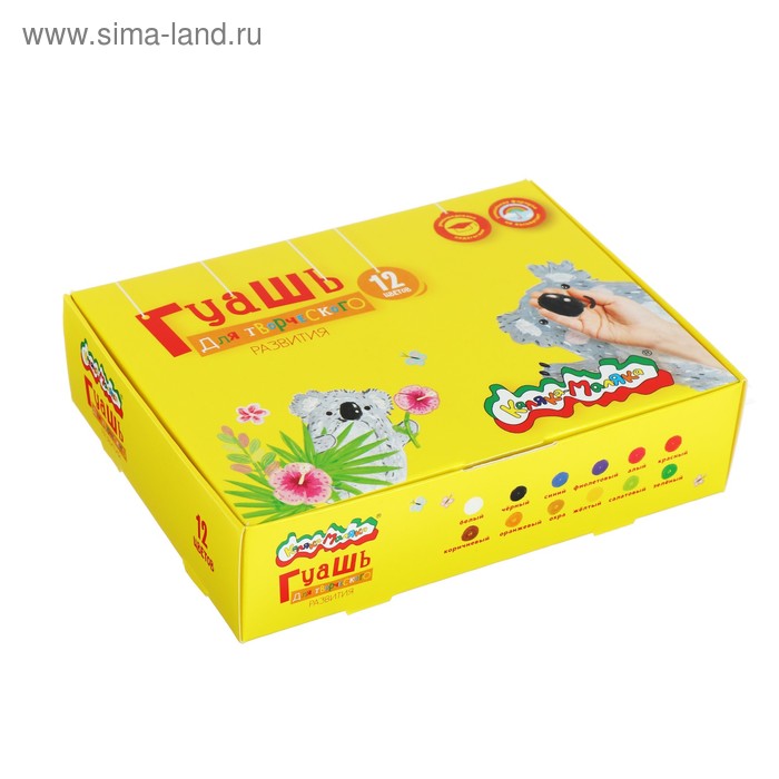 Гуашь 12 цветов по 10 мл, «Котик и мольберт»