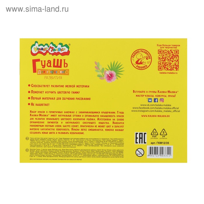 | Бренд | Каляка-Маляка |