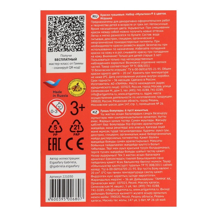 Гуашь 12 цветов по 10 мл, «Котик и мольберт»