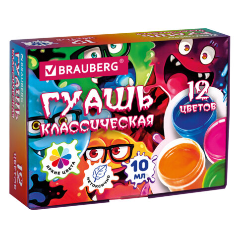 Гуашь BRAUBERG "МОНСТРИКИ", 12 цветов по 10 мл, 192642