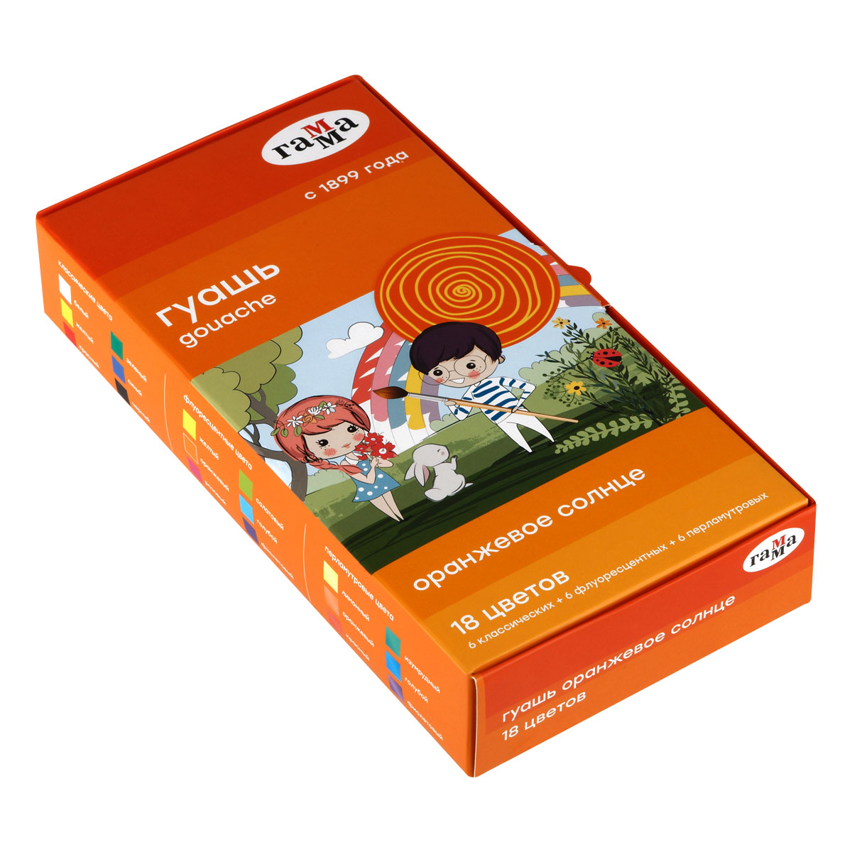 УЦЕНКА - Гуашь Гамма "Оранжевое солнце", 18 цветов (6 перламутр.+ 6 классич.+ 6 флуор.), картон. упаковка