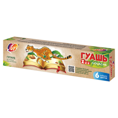 Гуашь ЛУЧ "Zoo", 6 цветов по 15 мл, блок-тара, без кисти, картонная упаковка, 19С 1250-08