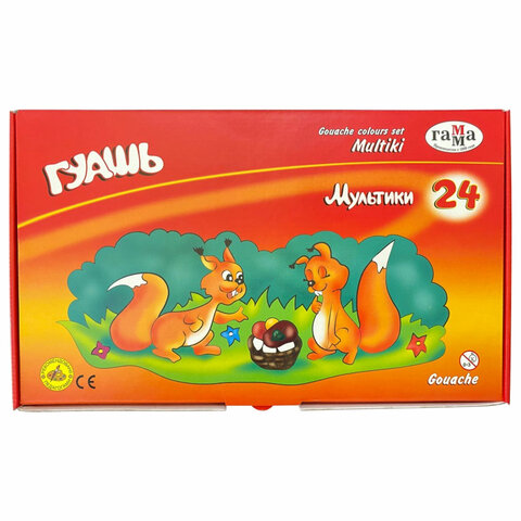 Гуашь Гамма "Мультики", 24 цвета, 20мл, картон. упаковка, NEW