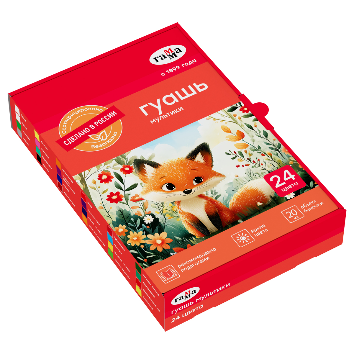 Гуашь Гамма "Мультики", 24 цвета, 20мл, картон. упаковка, NEW