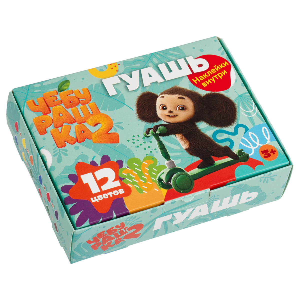 Гуашь с наклейками Мульти-Пульти "Чебурашка-2", 12 цветов, 17,5мл, картон