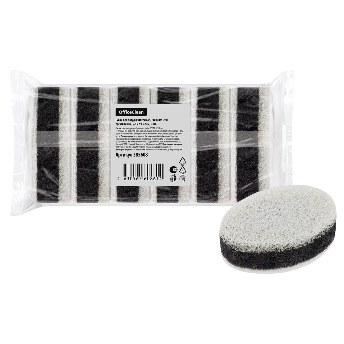 Губки для посуды OfficeClean, Premium Oval, трехслойные, 9,5*7*3,2см, 6шт