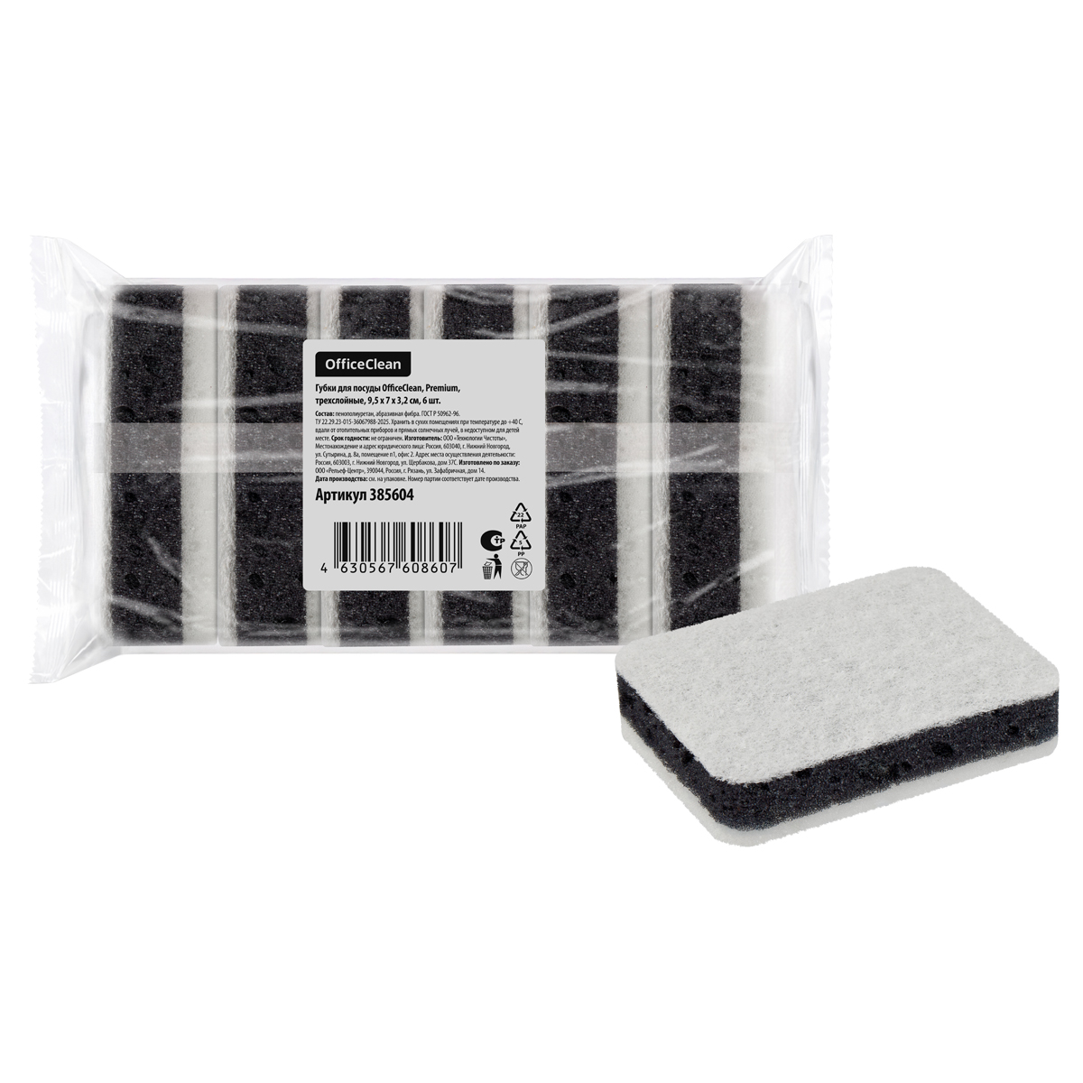 Губки для посуды OfficeClean, Premium, трехслойные, 9,5*7*3,2см, 6шт