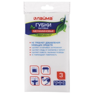 Губка-ластик МЕЛАМИНОВАЯ для удаления пятен, 100х60х30 мм, КОМПЛЕКТ 3 шт., полибэг, LAIMA, 605035