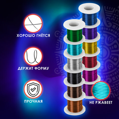 Проволока стальная для рукоделия, диаметр – 0,3 мм, 12 цветов по 10 м, ОСТРОВ СОКРОВИЩ.