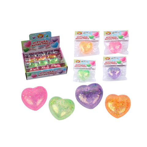 Игрушка-антистресс "СТЕКЛЯННОЕ СЕРДЦЕ", 5 см, ассорти 4 цвета, дисплей, JOLLY JOT (ДЖОЛЛИ ДЖОТ), 665808