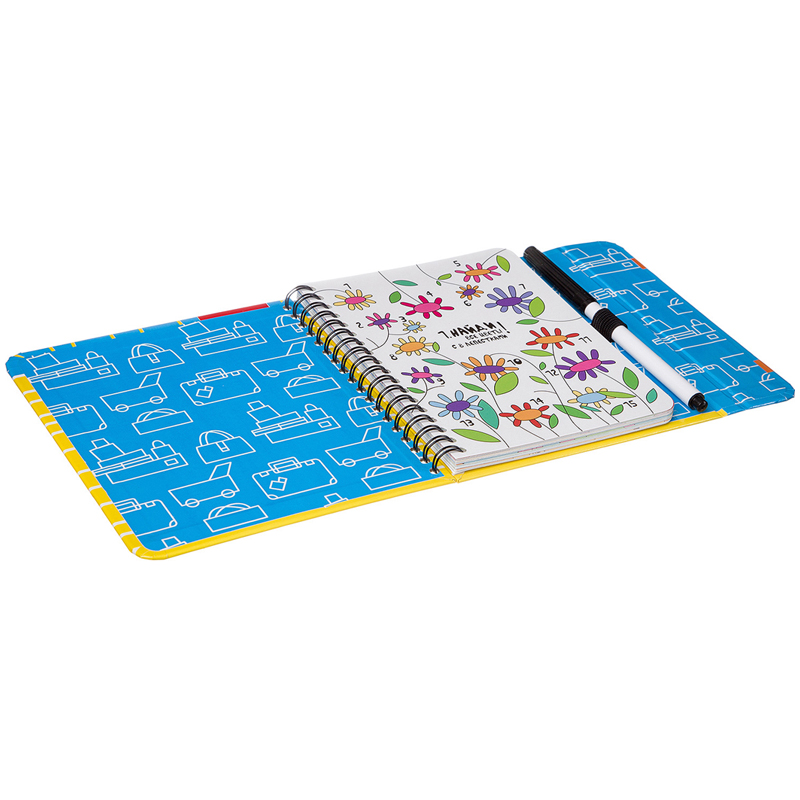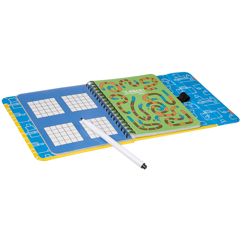 В комплект входит 16 двусторонних карточек, 30 заданий, маркер на водной основе, которым можно рисовать на карточках, а потом с легкостью стирать.