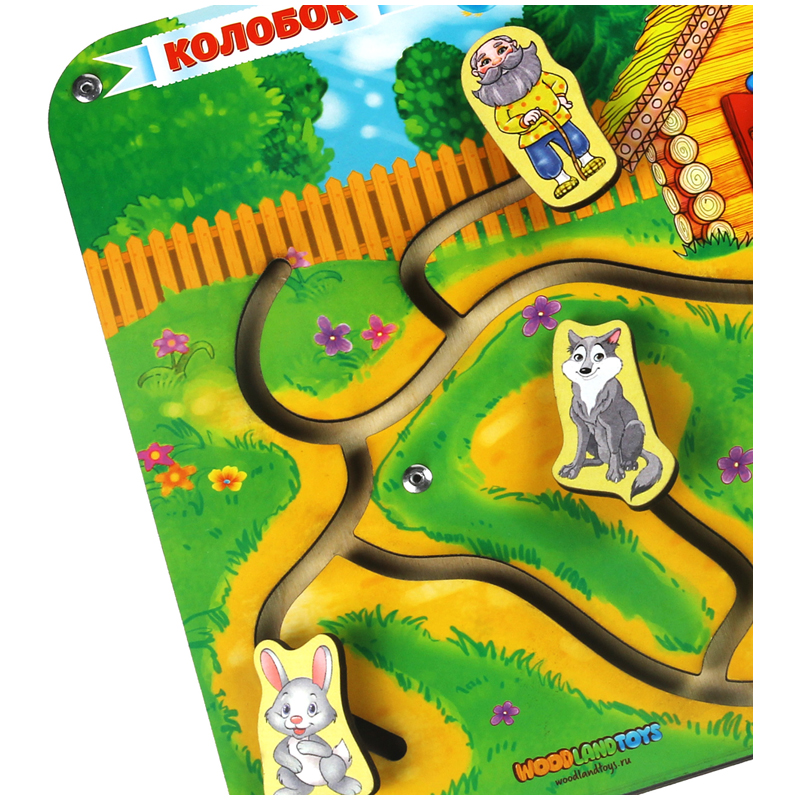 Лабиринт – познавательная развивающая игрушка для любознательных малышей. Лабиринт «Колобок» создан по мотивам одноименной русской народной сказки. Задача ребенка для каждого героя найти свое место, определить правильный путь и двигать фигурки по дорожкам до нужного места. Игровые действия с Лабиринтом развивают логическое мышление, память, воображение, зрительное и тактильное восприятие, знакомят с предметами и объектами окружающего мира, учат ориентироваться в пространстве. Процесс игры с Лабиринтом занимает ребенка на продолжительное время и дарит массу положительных эмоций.