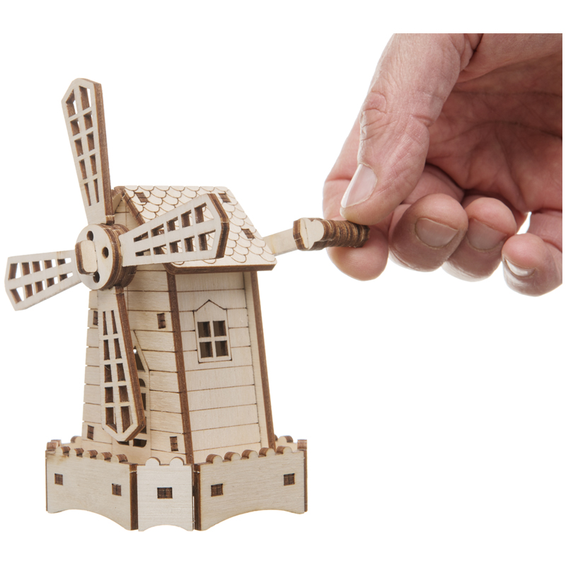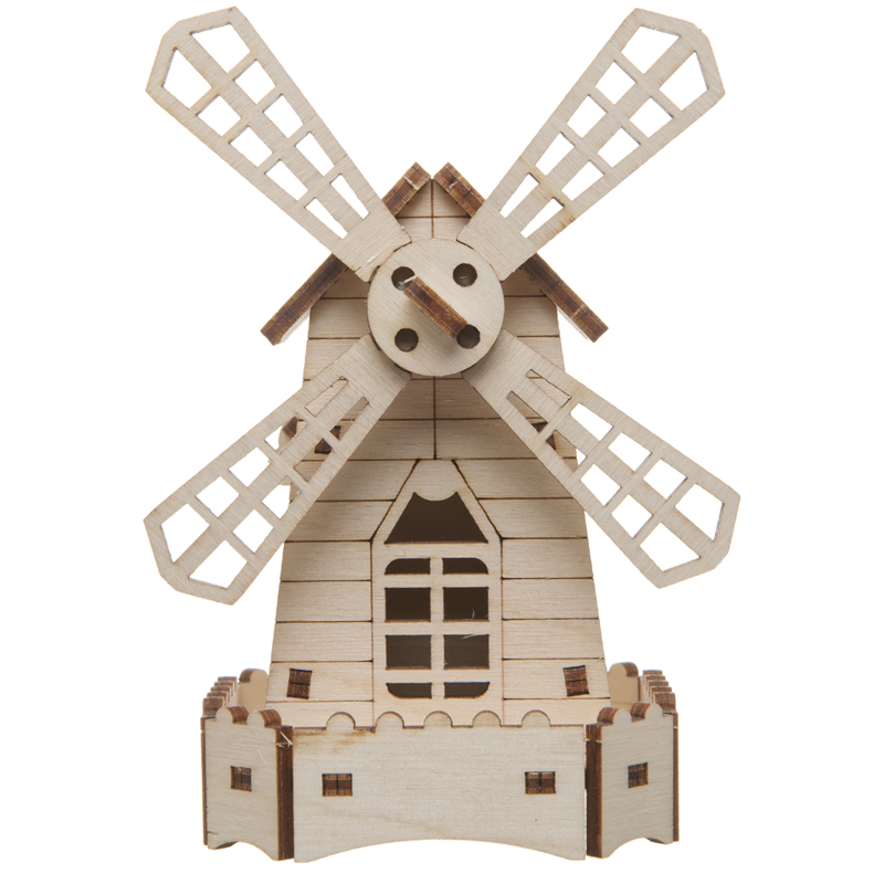 Модель "Мельница".<br/>Конструктор 3D деревянный, подвижный "Мельница" бежевого цвета марки TADIWOOD. Модель "Мельница" создана по мотивам народных сказок, с задней части конструктора имеется ручка для вращения крыльев мельницы.<br/>Конструктор из дерева или как его еще называют 3D конструктор или 3D пазл, собирается полностью без клея и специального инструмента. Все элементы легко и прочно соединяются друг с другом. Конструктор можно раскрасить любыми красками, фломастерами или карандашами, проявив при этом свой дизайнерский потенциал.<br/>Конструктор выполнен из высококачественной березовой фанеры 1 сорта. Насыщенный запах дерева добавляет приятных эмоций во время сборки.<br/> В комплект входит: все необходимые детали конструктора, подробная инструкция для сборки.<br/> Сборка модели порадует не только детей, но и взрослых любителей моделизма.<br/>Конструкторы от TADIWOOD помимо развлекающей функции имеют развивающую функцию - это отличная тренировка усидчивости, внимательности, а также развитие глазомера, мелкой моторики рук, пространственного и логического мышления.