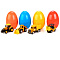 Дети очень любят сюрпризы. Игрушка представляет собой цветное пластиковое яйцо, которое внутри скрывает сюрприз – модель машины из серии строительной техники. Модели распределены в яйца случайным образом, и угадать какая именно игрушка находится внутри -