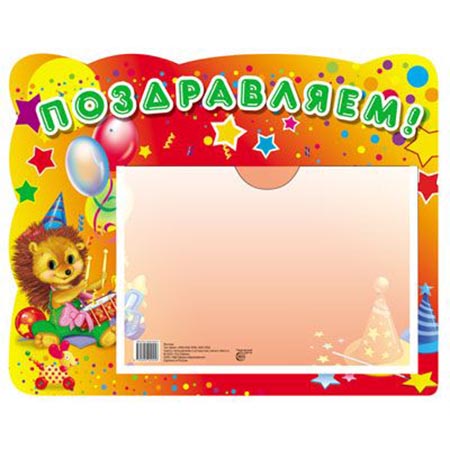 Стенд " Сфера " А4 Поздравляем! Ежик, с пластиковым карманом А5