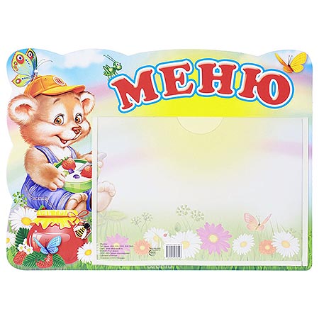 Стенд " Сфера " А4 Меню. Медвежонок, с пластиковым карманом А5