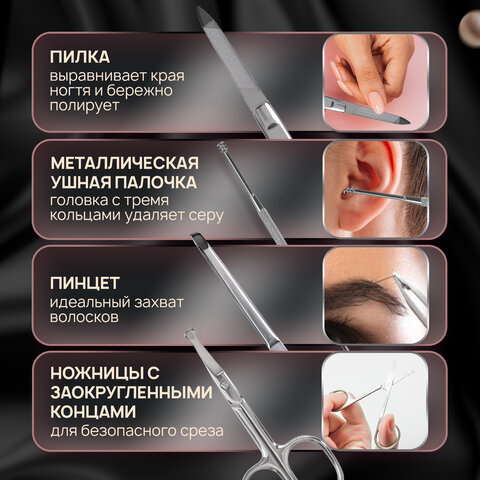 Универсальный набор для маникюра и педикюра 9 в 1 в футляре, MINI, черный карбон, блиcтер, 609496
