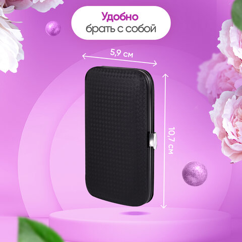 Универсальный набор для маникюра и педикюра 9 в 1 в футляре, MINI, черный карбон, блиcтер, 609496