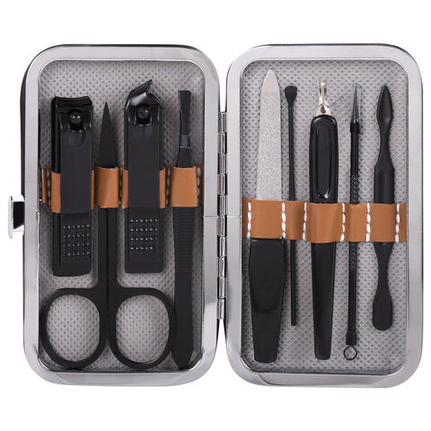 Универсальный набор для маникюра и педикюра 9 в 1 в футляре, MINI, черный, WBZ, 609491