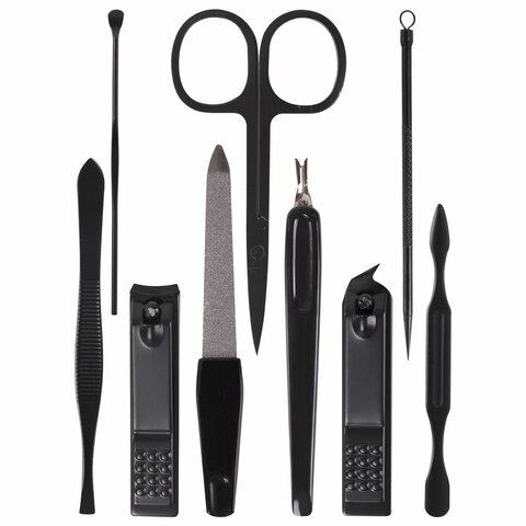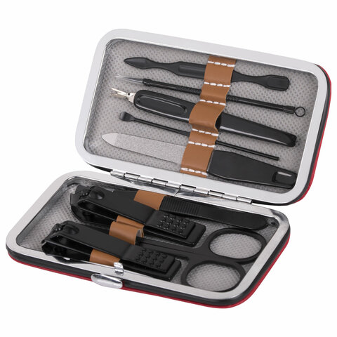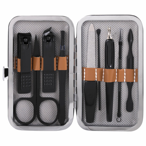 Универсальный набор для маникюра и педикюра 9 в 1 в футляре, MINI, черный, WBZ, 609491