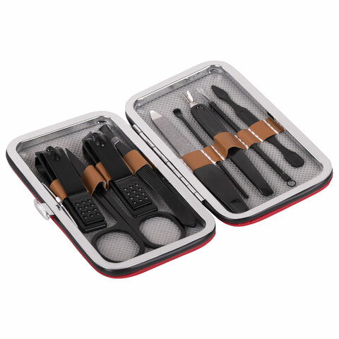 Универсальный набор для маникюра и педикюра 9 в 1 в футляре, MINI, черный карбон, блиcтер, 609496
