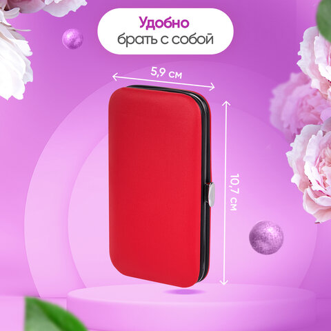 Универсальный набор для маникюра и педикюра 9 в 1 в футляре, MINI, красный, блистер, 609497
