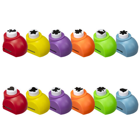 Дыроколы фигурные, НАБОР 12 видов, диаметр вырубки 10 мм, ОСТРОВ СОКРОВИЩ, 665226