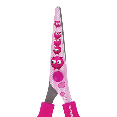 Яркие детские ножницы BRAUBERG "Kid Series" с цветными поросятами на лезвиях предназначены для правшей. Ребенок без труда сможет ими пользоваться, так как их длина всего 130 мм. Симметричные ручки помогают уменьшить нагрузку на руку ребенка даже при интенсивной и продолжительной работе. Закругленные концы делают ножницы безопасными в использовании (при условии использования их по назначению). Ручки из пластика повышенной прочности и лезвия из нержавеющей стали обеспечивают ножницам максимально долгий срок службы. Продаются в картонной упаковке с европодвесом.