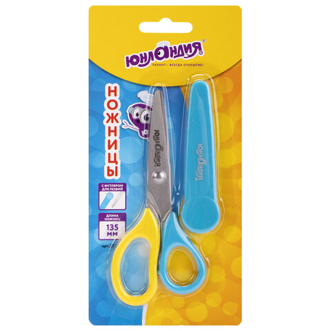Ножницы ЮНЛАНДИЯ с эргономичными ручками помогают уменьшить нагрузку на руку ребенка при интенсивной и продолжительной работе, а футляр предотвращает загрязнение лезвий и повреждение рук при неаккуратном обращении с ножницами.