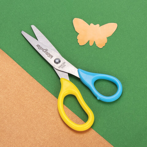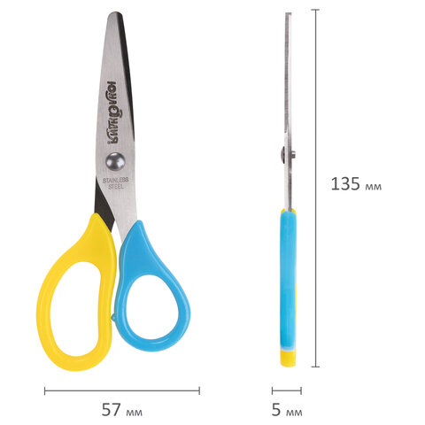 Ребенок без труда сможет пользоваться такими ножницами, так как их длина - 135 мм. Закругленные концы гарантируют безопасность при использовании ножниц по назначению. Лезвия изготовлены из прочной нержавеющей стали, что обеспечивает максимально долгий срок службы и аккуратное разрезание разных видов материалов. Предназначены для правшей.