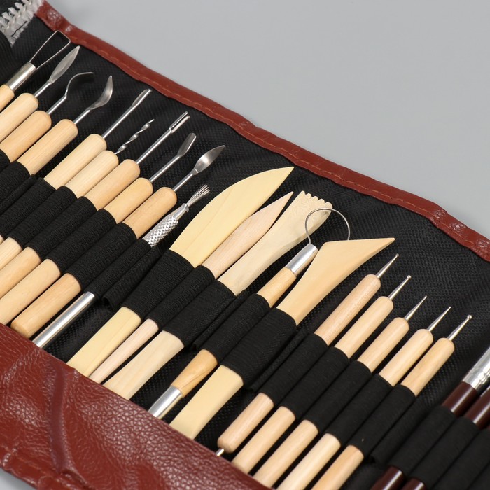 Инструмент для моделирования керамических изделий дерево, металл набор 5 шт 18 см