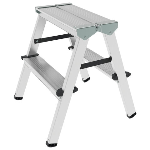 Стремянка двухсторонняя алюминиевая 2 ступени, А 7202, нагрузка до 150кг